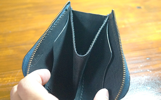 ヌメ革のミニジップウォレット ブルーグリーン[F4570]