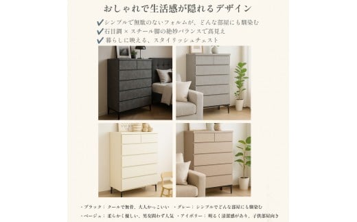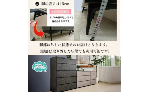 - チェスト タンス 収納 幅80.2cm 奥行39.7cm×高さ121.2cm 5段 完成品 脚付きチェスト ホエール グレー