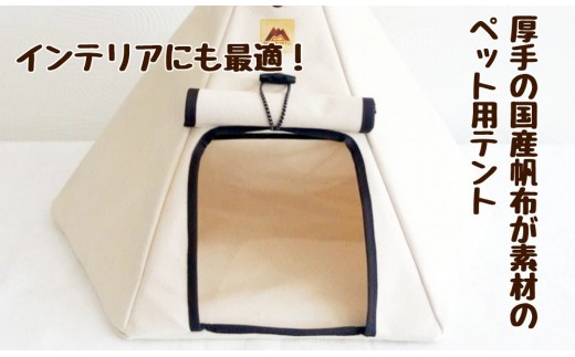 - 【ネコテント】国産帆布が素材!本格的デザインペットテント(生成×ブラウン)_00375