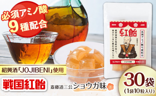 【JOJIBENI】 飴 アミノ酸たっぷりの紹興酒を使った 戦国紅飴 斎藤道三ショウガ味 個包装 30袋入り(計300粒)【クインズゲイトオリジナル】 お菓子 アメ 飴 戦国武将 おすすめ 人気 300個 詰め合わせ あめ キャンディ スイーツ デザート おやつ JOJIBENI 生姜 しょうが ギフト プレゼント 贈り物 贈答 お誕生日 敬老の日 岐阜市/クインズゲイト [ANBI027]