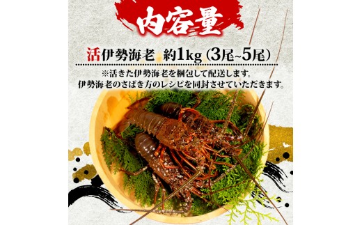 - 活き 伊勢海老 約 1kg 3尾 ~ 5尾 海老 えび エビ いせえび 志摩 天然 刺身 BBQ バーベキュー 味噌汁 海鮮 魚介 新鮮 のし 熨斗 三重県 伊勢志摩 伊勢 志摩 みえ いせしま いせ しま