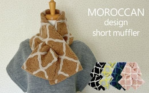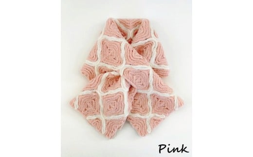 - ショートマフラー モロッカン柄 ウール混 コード刺繍 ( ピンク ) レディース 日本製 | おしゃれ シンプル マフラー プレゼントギフト 母の日 新潟県 五泉市 有限会社田中刺繍