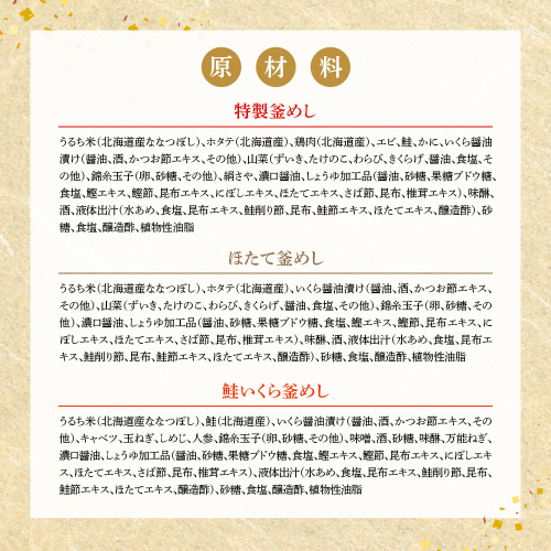 - 釜めし専門店の『特製釜めし』『ほたて釜めし』『鮭いくら釜めし』のギフトセット【280014】