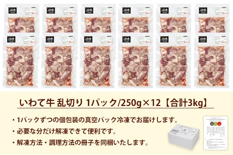 黒毛和牛 いわて牛 乱切り 3kg (250g×12パック)(DV061)