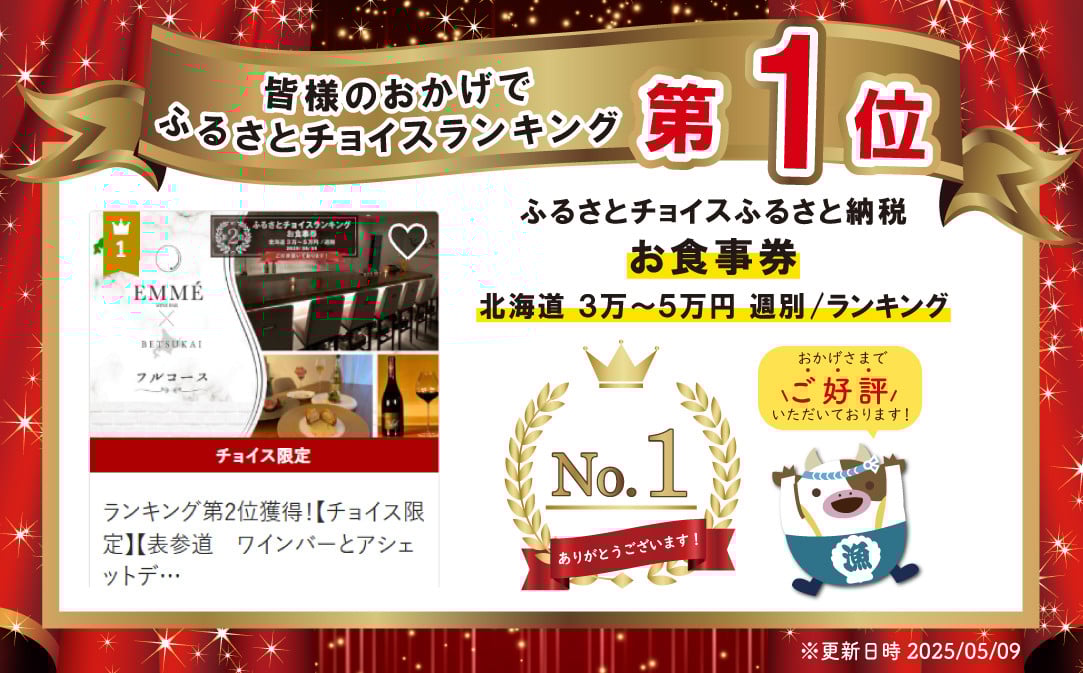 - ランキング第1位獲得!【表参道 ワインバーとアシェットデセール】EMME(エンメ)「別海町ディナーコース」お食事券1名様【CC0000043】( 食事券 食事 お食事券 東京都 東京 ワイン アシェットデセール フルコース ふるさとチョイス ふるさと納税 仕組み キャンペーン 限度額 計算 ランキング やり方 シミュレーション チョイス チョイスマイル )