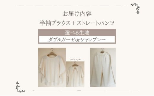 - 生地が選べる!人と環境にやさしい天然素材のルームウエア(半袖ブラウス+ストレートパンツ) ダブルガーゼorシャンブレー SK001/SK002