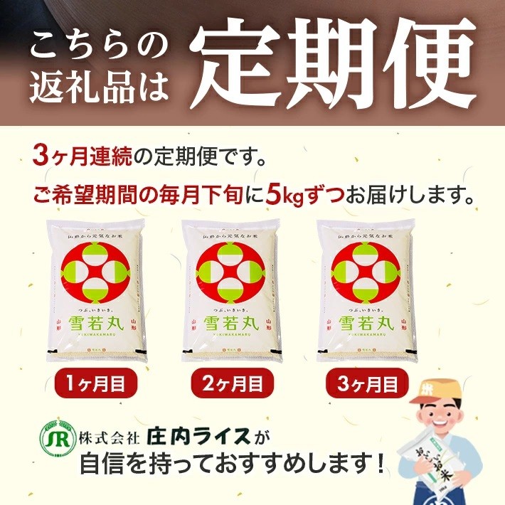 1295T 【定期便】庄内産雪若丸5kg×3ヶ月連続