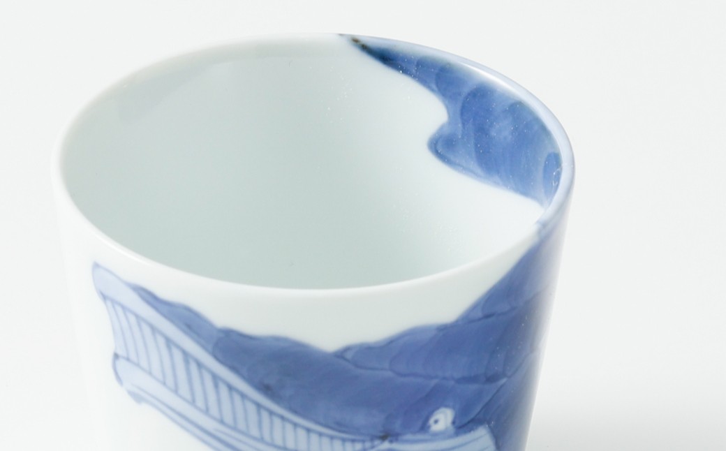 - 【渓山窯】有田焼/染付ナガスくじら そば猪口