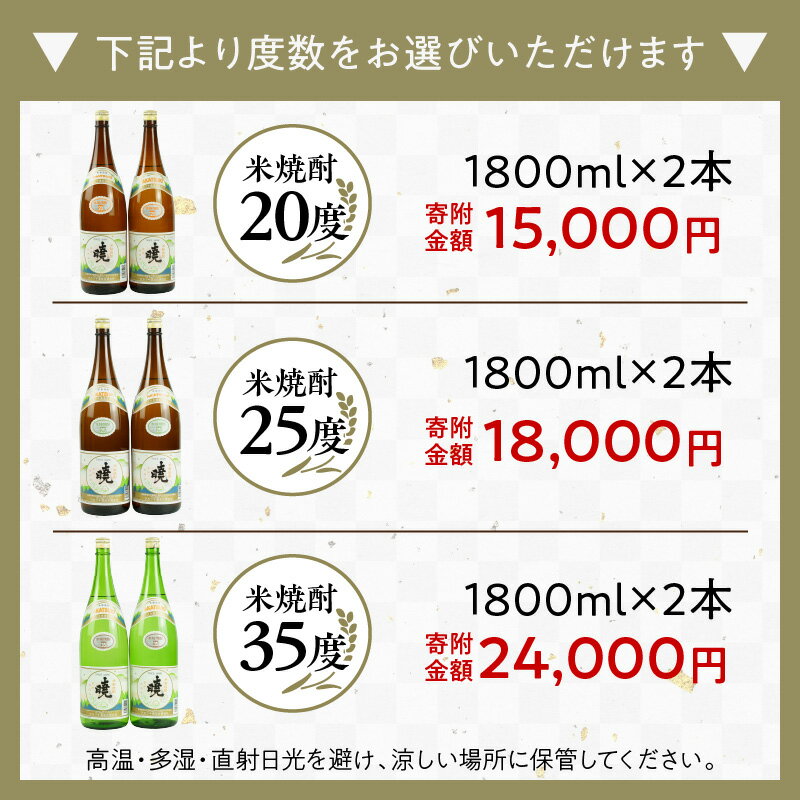 - 【ふるさと納税】【選べる度数】米焼酎 暁 1800ml×2本 1.8L アカツキ酒造 お酒 焼酎 米 常圧蒸留 瓶 本格 国産 九州 贈答 贈り物 贈答品 ギフト プレゼント 還暦祝い 内祝い お祝い 誕生日 父の日 お返し 人気 男性 父親 彼氏 上司 宮崎県 高千穂町 送料無料
