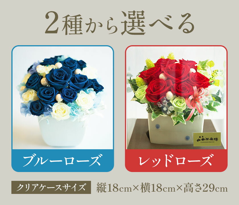 - 【ふるさと納税】プリザーブドフラワー 選べる 色 ブルーローズ レッドローズ 天草白磁《選べる出荷時期》熊本県 苓北町 花 はな フラワー ローズ バラ 薔薇 青 青薔薇 アレンジメント 内田皿山焼 花瓶 インテリア