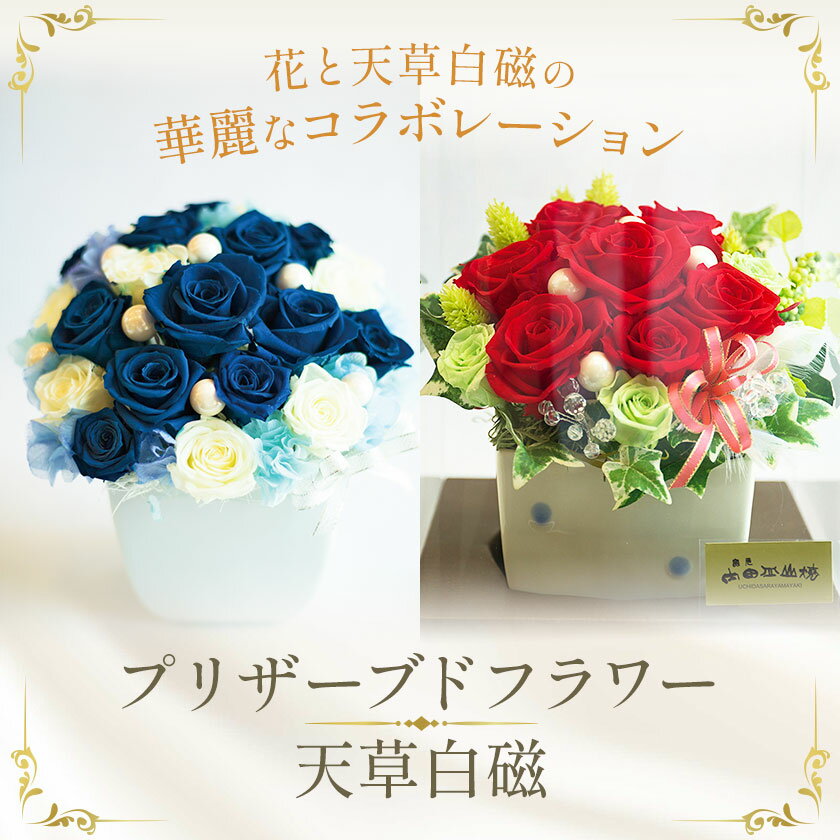 【ふるさと納税】プリザーブドフラワー 選べる 色 ブルーローズ レッドローズ 天草白磁《選べる出荷時期》熊本県 苓北町 花 はな フラワー ローズ バラ 薔薇 青 青薔薇 アレンジメント 内田皿山焼 花瓶 インテリア