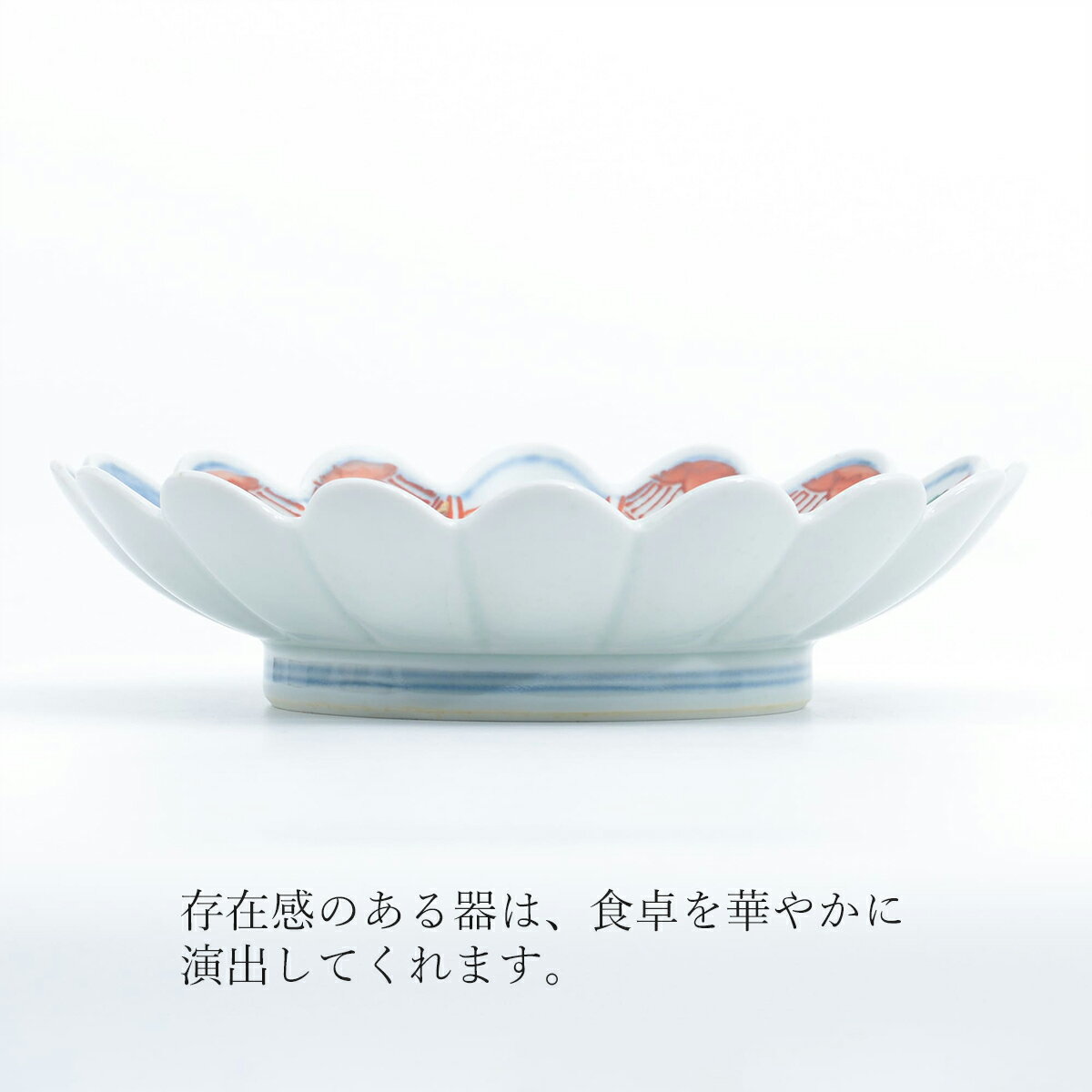 - 【ふるさと納税】有田焼 錦菖蒲 菊形6.5寸皿 1枚 直径18cm【まるぶんオリジナル】食器 器 うつわ 磁器 和食器 皿 プレート 取皿 中皿 フルーツ皿 菊皿 初期伊万里 赤絵 お正月 ハレの日 手描き 食洗機対応 A30-818
