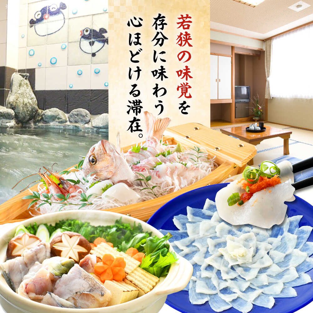 - 【ふるさと納税】若狭ふぐフルコース付 ペア宿泊券(一泊二食付) / 宿泊 宿泊券 民宿 旅行 旅 海鮮 食品 魚介 高級 魚 鮮魚 ふぐ 河豚 とらふぐ 若狭ふぐ 刺身 てっさ ふぐ皮 ひれ ブランド 冷蔵 小浜市 / 若狭ふぐの宿 下亟 [BFAF003]