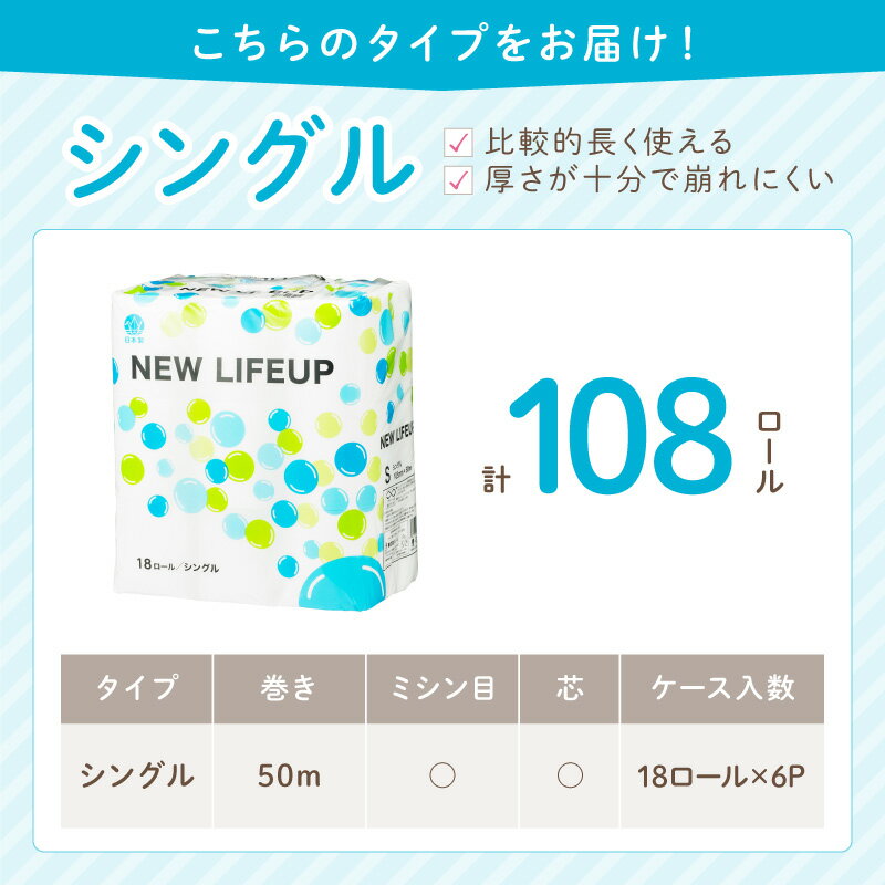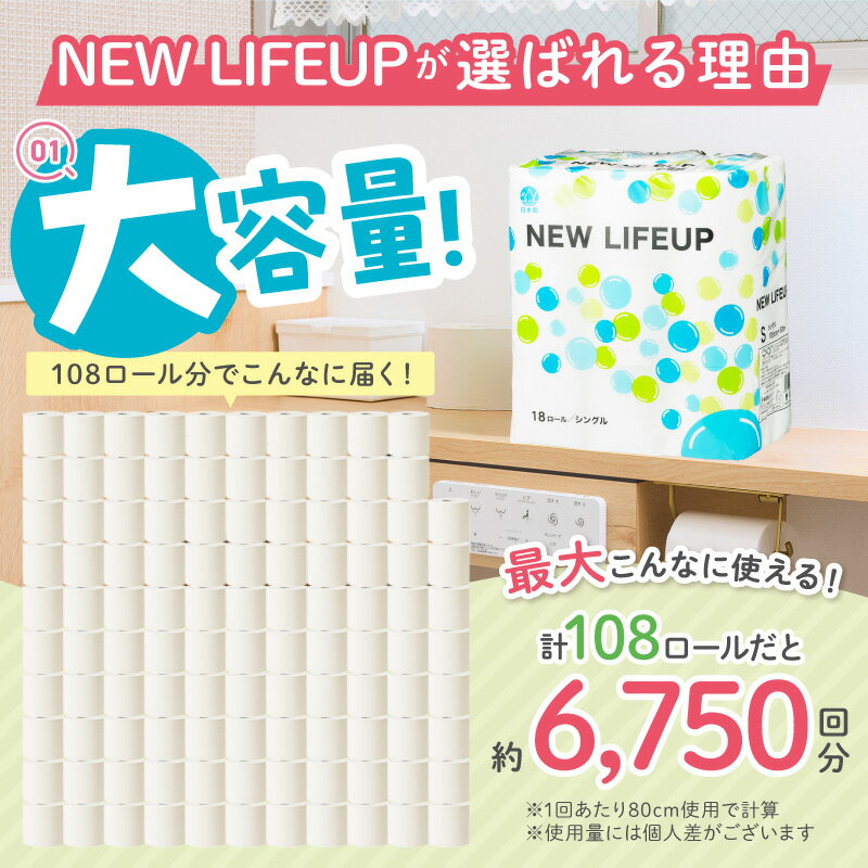 - 【ふるさと納税】【数量限定】トイレットペーパー 108ロール ニューライフアップ シングル 巻【配送不可地域:北海道・沖縄・離島】【30営業日以内に発送】