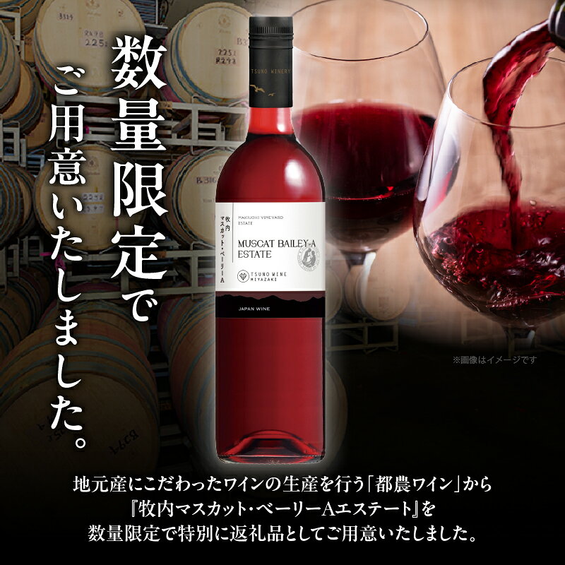 【ふるさと納税】【選べる内容量】 数量限定 牧内マスカット・ベーリーAエステート 1本 or 2本 酒 飲料 アルコール 国産 ぶどう 赤ワイン 辛口 WINE 果実酒 ご褒美 パーティー お祝い 贅沢 記念日 イベント 晩酌 ギフト 贈り物 贈答 プレゼント 宮崎県 都農町 送料無料