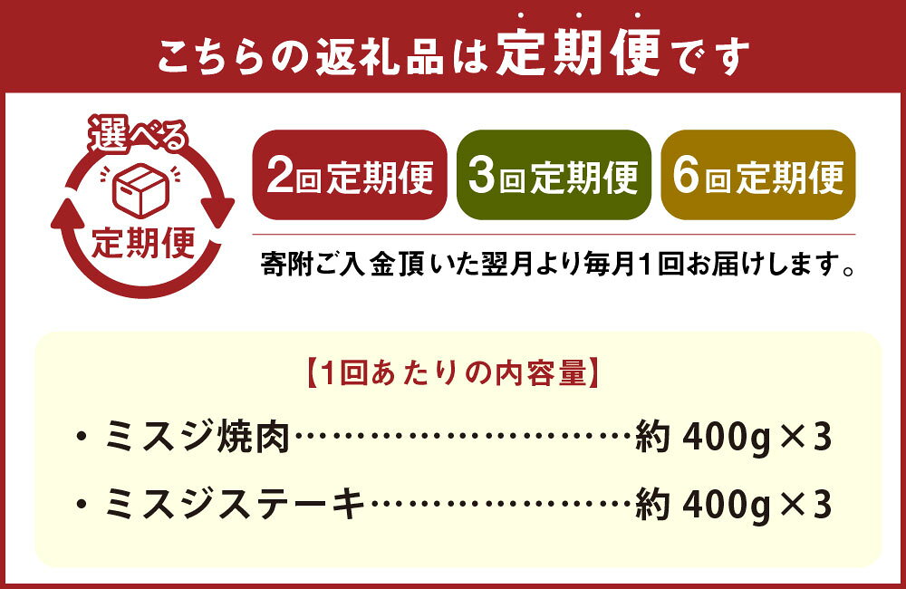 - 【ふるさと納税】<選べる定期便>【ミスジたっぷり食べ比べ!】おおいた和牛 ミスジ 焼肉・ステーキ セット 1回あたり計約2.4kg(約400g×6) 各3パック 1ヶ月毎 2回 3回 6回 和牛 牛肉 お肉 みすじ ウデ 希少部位 焼き肉 冷凍 大分県産 国産 大分県 竹田市 送料無料
