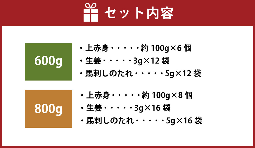 - 【ふるさと納税】<選べる内容量>【フジチク ふじ馬刺し】馬刺し上赤身 計約600g(約100g×6個) / 計約800g(約100g×8個) 馬肉 お肉 馬刺 赤身 生姜 馬刺しのたれ 高タンパク質 低カロリー 鉄分 グリコーゲン 冷凍 熊本県 相良村 送料無料