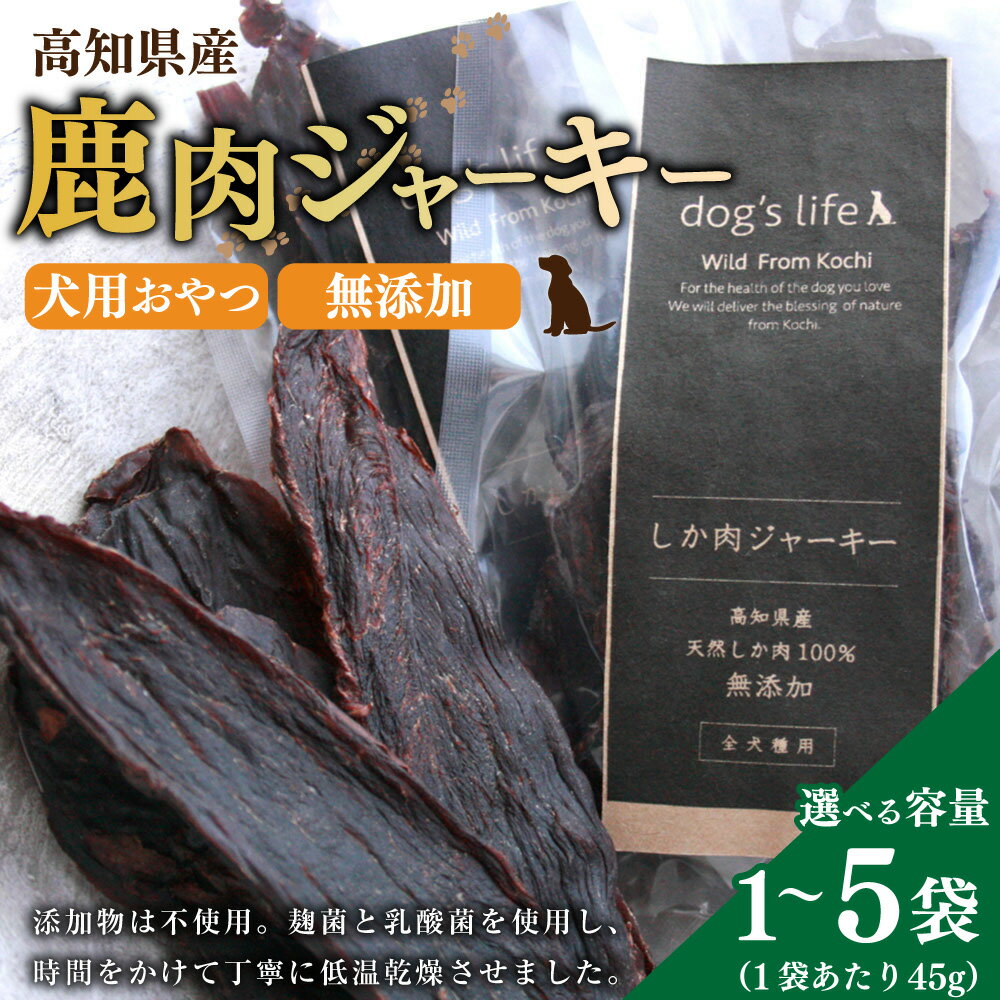 - 【ふるさと納税】<選べる内容量>高知産 犬用おやつ 鹿肉ジャーキー 1袋 3袋 5袋 計45g 計135g 計225g 天然鹿肉 お肉 赤身肉 ジビエ ペットフード ドッグフード 犬用 おやつ 全年齢 健康 国産 高知県 香美市 送料無料