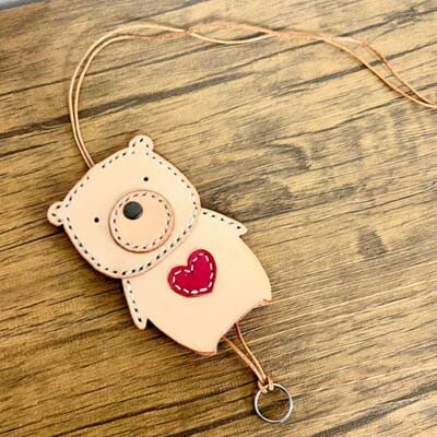 - 【ふるさと納税】【本革×手縫い】くまさん★ハート付きレザーキーポーチ/お名前刻印OK!【1672394】