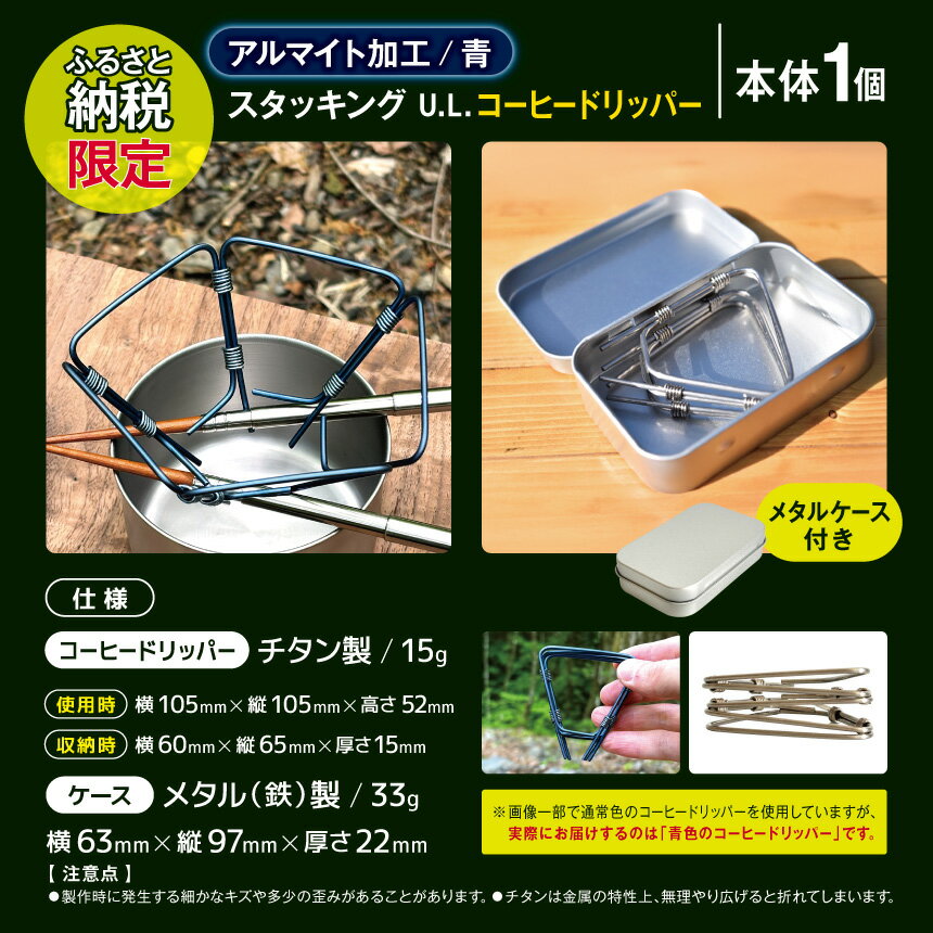 - 【ふるさと納税】【アルマイト加工(青)】スタッキング U.L.コーヒードリッパー(メタルケース付き)【ふるさと納税限定】 | スタッキング コーヒー コーヒードリッパー キャンプ 超軽量 軽量 チタン アウトドア 山 信州 松本市 長野県 ふるさと納税限定