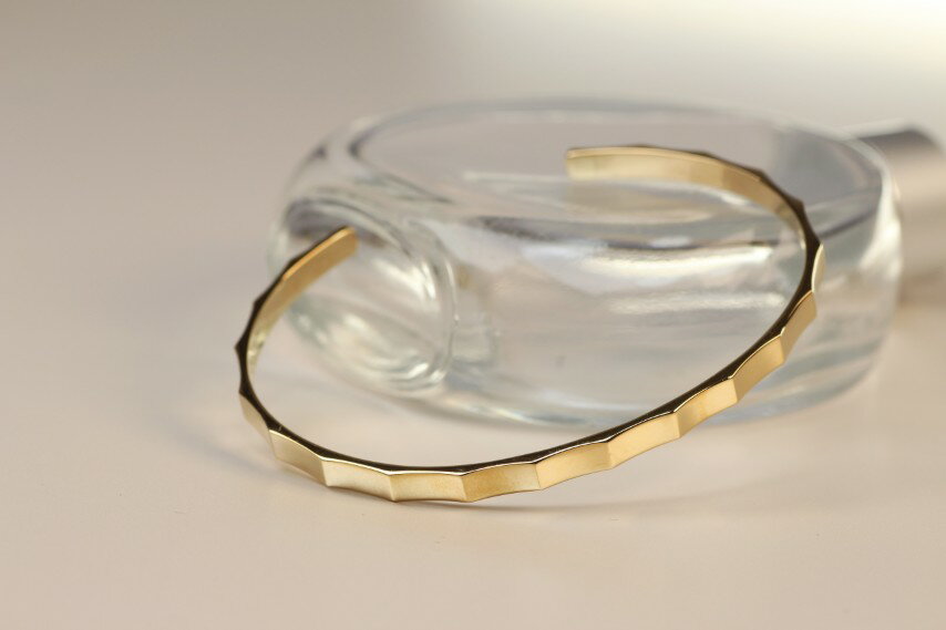 【ふるさと納税】< 甲府ジュエリー > バングル ブレスレット ジュエリー メンズ アクセサリー K18 イエローゴールド 大人 凹凸 個性 贅沢 シンプル ギフト プレゼント ジュエリーボックス付 保証書付 k344-025