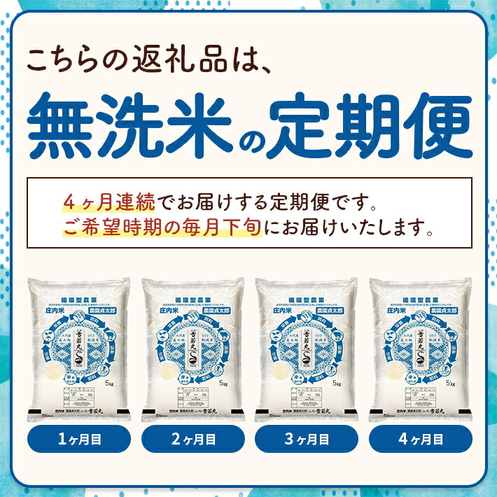 - 【ふるさと納税】≪4ヶ月定期便≫ 無洗米 雪若丸 5kg×4ヶ月連続 計20kg 令和7年産 山形県産 ご希望期間の毎月下旬にお届け 白米 庄内米 米 ごはん ご飯 酒田市 庄内 山形県 東北 定期便 4回