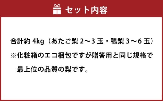 あたご梨 2~3玉・鴨梨(ヤーリー)3~6玉 詰合せ 合計約4kg 化粧箱 梨 ナシ なし 愛宕梨 あたごなし ジャンボ梨 【2025年11月下旬~12月下旬発送予定】