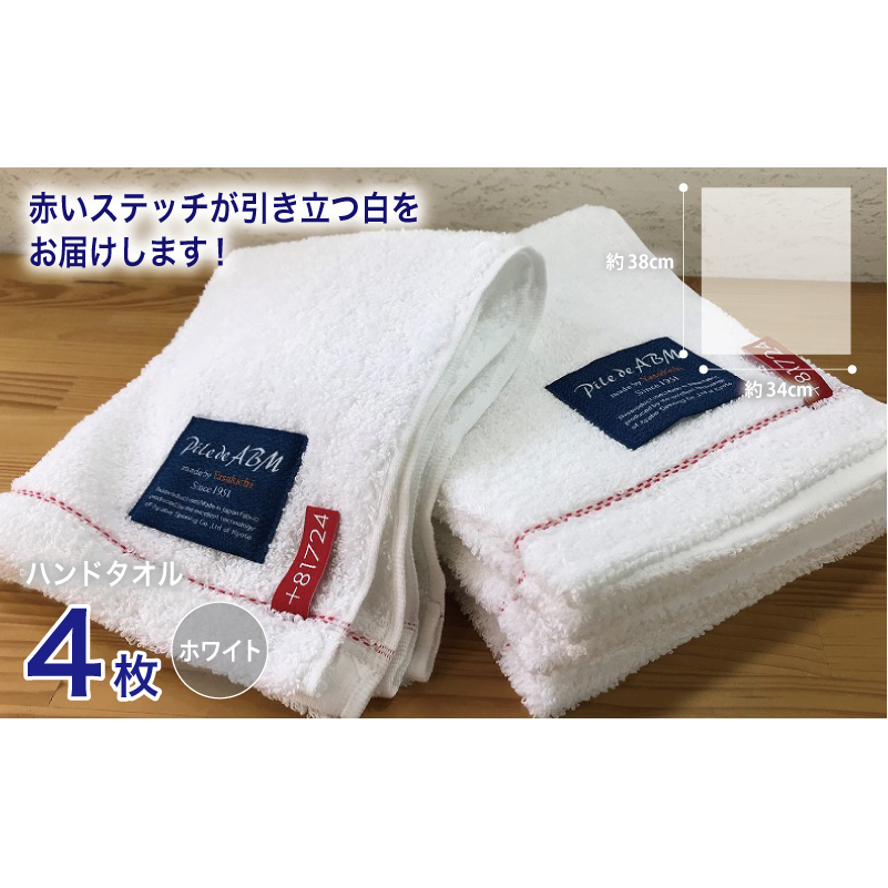 高級デニム糸で織った泉州タオル4枚(ホワイト)【泉州タオル 国産 吸水 普段使い 無地 シンプル 日用品 家族 ファミリー】 010B054