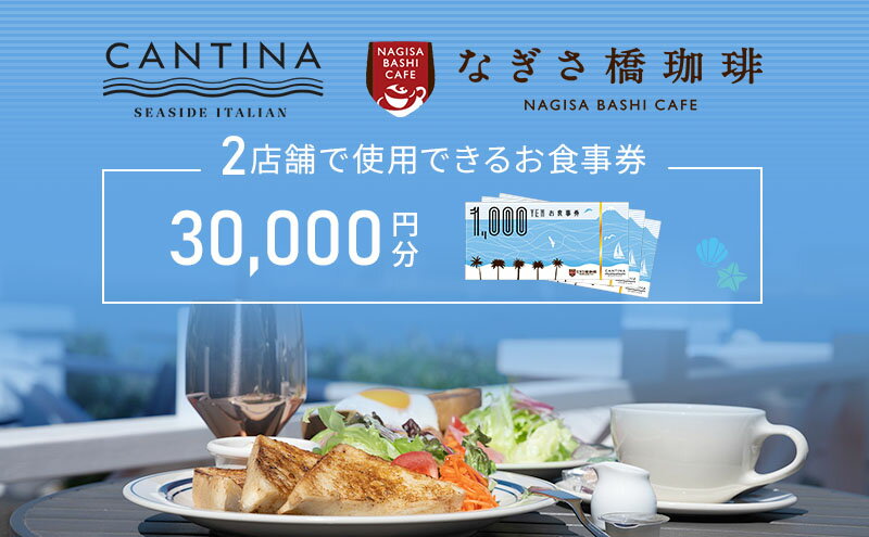 【ふるさと納税】シーサイドイタリアンカンティーナ なぎさ橋珈琲 お食事券F 30,000円分 オーシャンビュー レストラン カフェ 逗子海岸 テラス席 ランチ ディナー お食事券・チケット