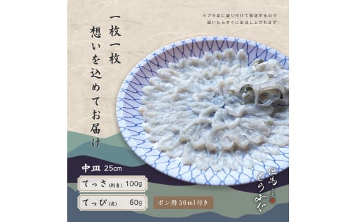 - 【1月下旬発送】 但馬とらふぐ てっさ盛り 3~4人前(てっさ100g ふぐ皮60g ポン酢30ml) ふぐ フグ 河豚 とらふぐ トラフグ てっさ てっぴ ふぐ皮 刺身 ふぐ刺し 冷蔵 曜日指定 金 土 日 内陸養殖 陸上養殖 遊休施設 有効活用 地域活性化 兵庫県 朝来市 AS27C26