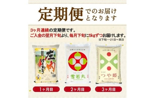 - 【3回定期便】令和7年産[精米]庄内米3銘柄食べ比べ(はえぬき、雪若丸、つや姫) 5kg×3回(計15kg)《農産物検査員おすすめの庄内米》 SY SF0327