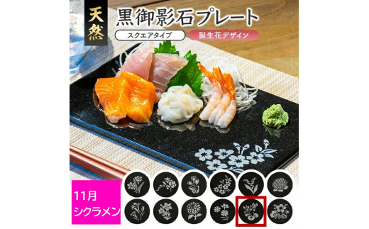 - 天然黒御影石 スクエアプレート 1枚 【誕生花彫刻(11月シクラメン)】 SE0266