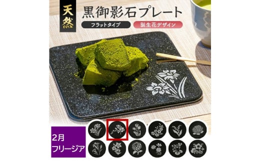 - 天然黒御影石 フラットプレート 1枚 【誕生花彫刻(2月フリージア)】 SE0270