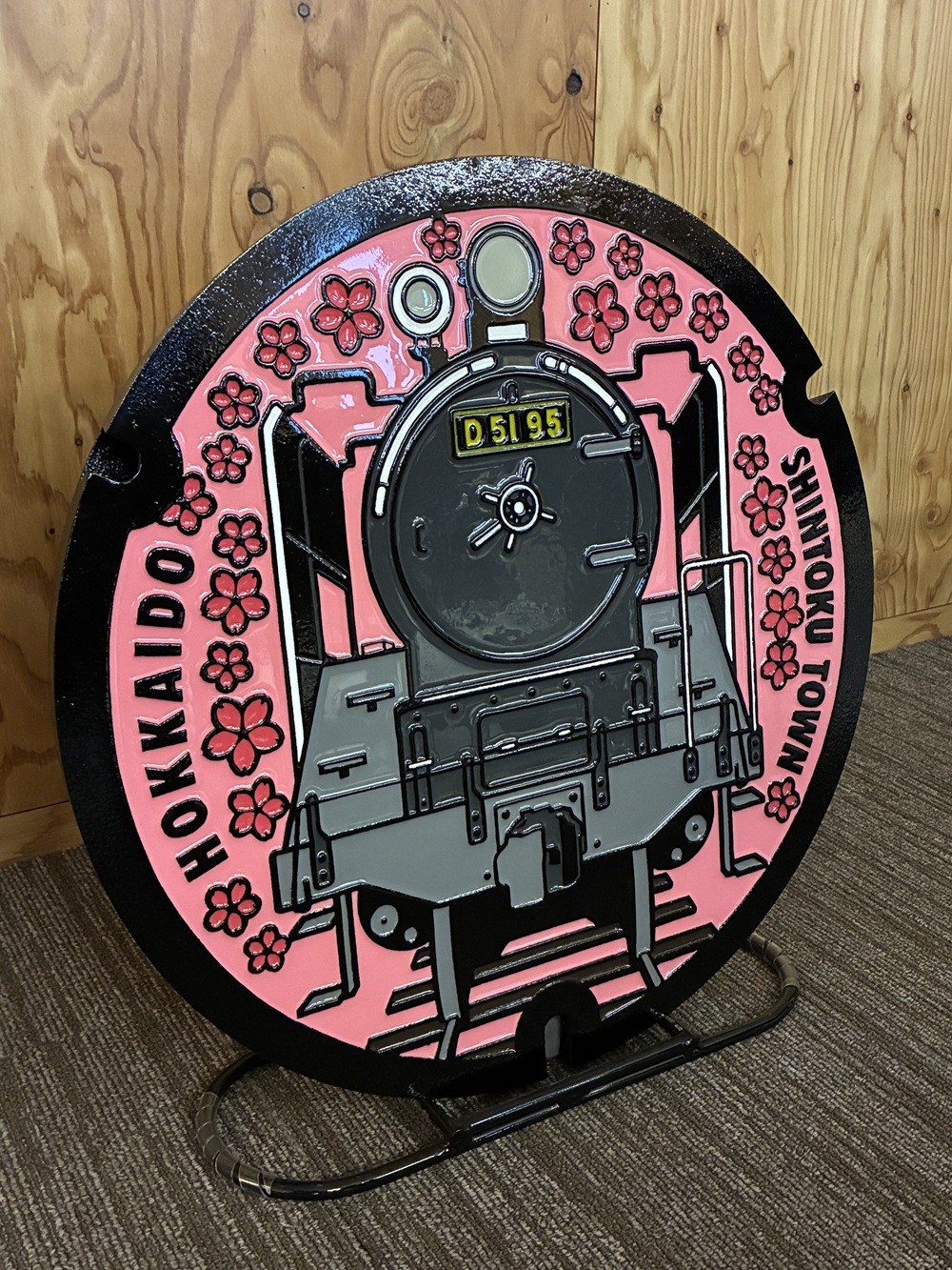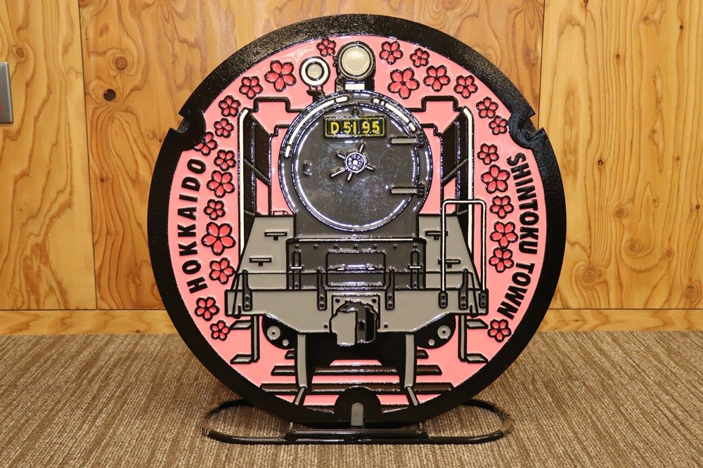 - AM-123001 新得町オリジナル 蒸気機関車「D51 95号機」デザインマンホール鉄蓋+展示架台