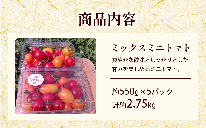 【2026年産先行受付】【栽培期間中 農薬不使用 】 北海道 滝川市 産 ミックス ミニトマト 約2.75kg (2026年7月中旬発送) トマト 野菜 やさい みにとまと