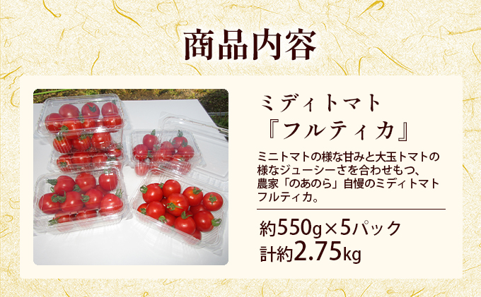 【2026年産先行受付】【栽培期間中 農薬不使用 】贅沢な一口ほおばるとまと( 北海道 滝川市 産中玉トマトフルティカ)2.75kg (2026年7月中旬発送) トマト 野菜 やさい フルティカ 中玉トマト