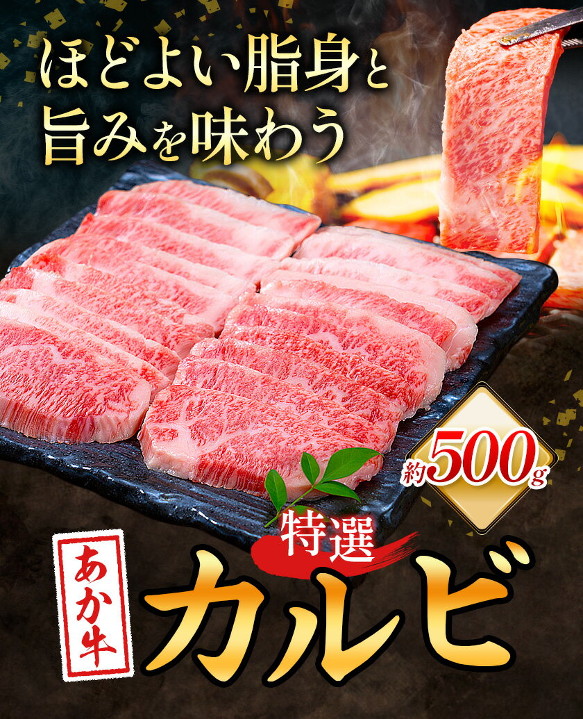 - 【ふるさと納税】熊本あか牛 特選カルビ 約500g 合同会社たべたせいか《30日以内に出荷予定(土日祝除く)》熊本県 菊池市 肉 牛肉 お肉 和牛 あか牛 焼き肉 焼肉 やきにく BBQ バーベキュー 特選 カルビ 熊本県産 冷凍 送料無料