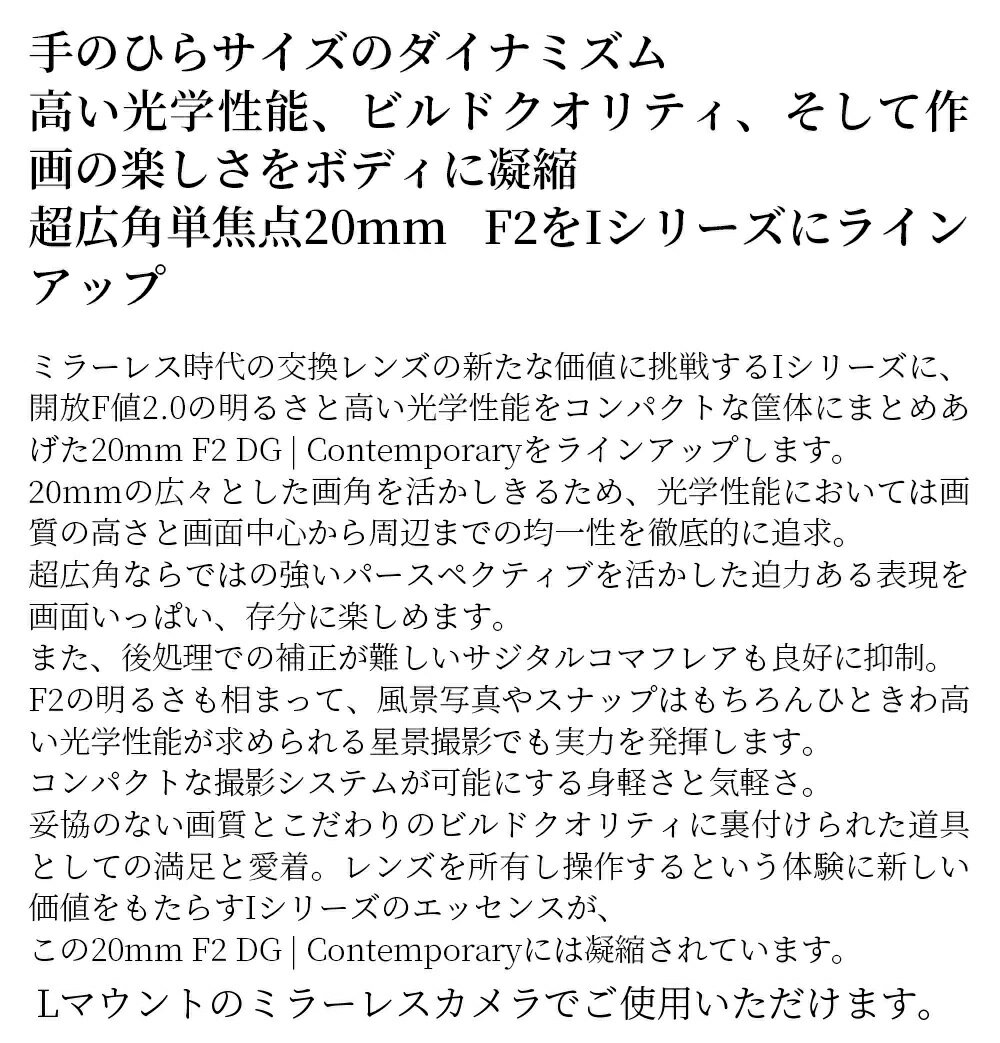 - 【ふるさと納税】SIGMA 20mm F2 DG | Contemporary【Lマウント】(ブラック/シルバー)