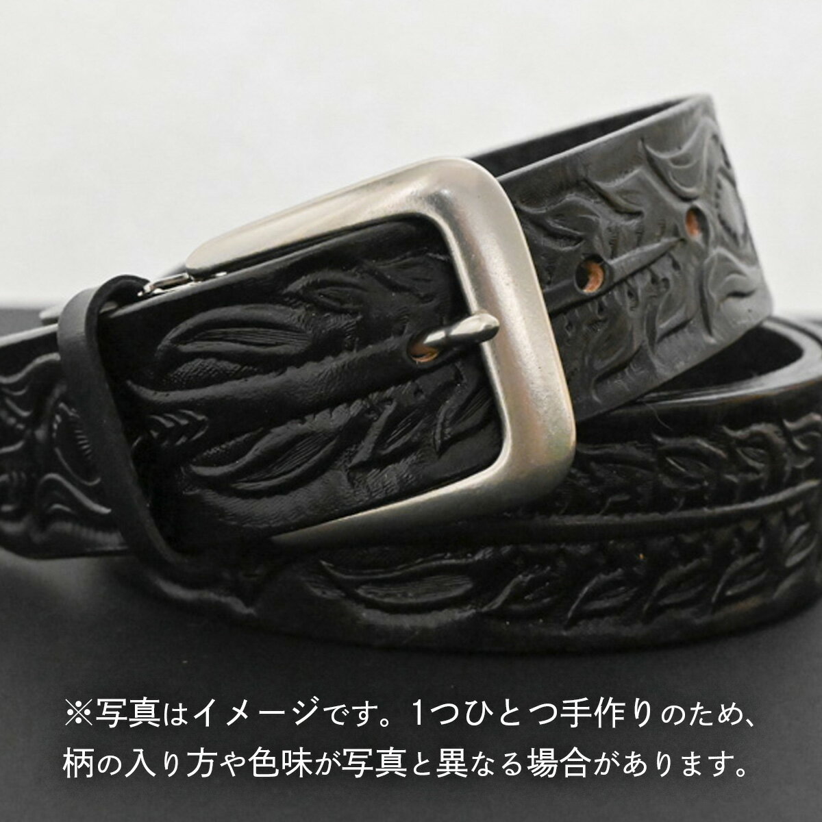- 【ふるさと納税】【数量限定】牛革ベルト (アンティーク黒染め+黒) 【太さ40mm、厚さ3.7mm、長さがMサイズ(110cm) or Lサイズ(130cm)】 牛革 牛 革 皮 ベルト 手作り ハンドメイド 花柄 父の日