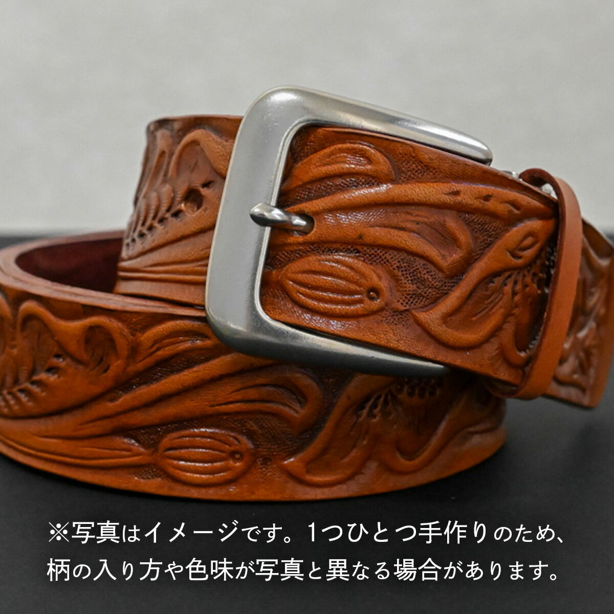 - 【ふるさと納税】【数量限定】牛革ベルト (アンティーク茶色染め) 【太さ40mm、厚さ3.7mm、長さがMサイズ(110cm) or Lサイズ(130cm)】 牛革 牛 革 皮 ベルト 手作り ハンドメイド 花柄 父の日