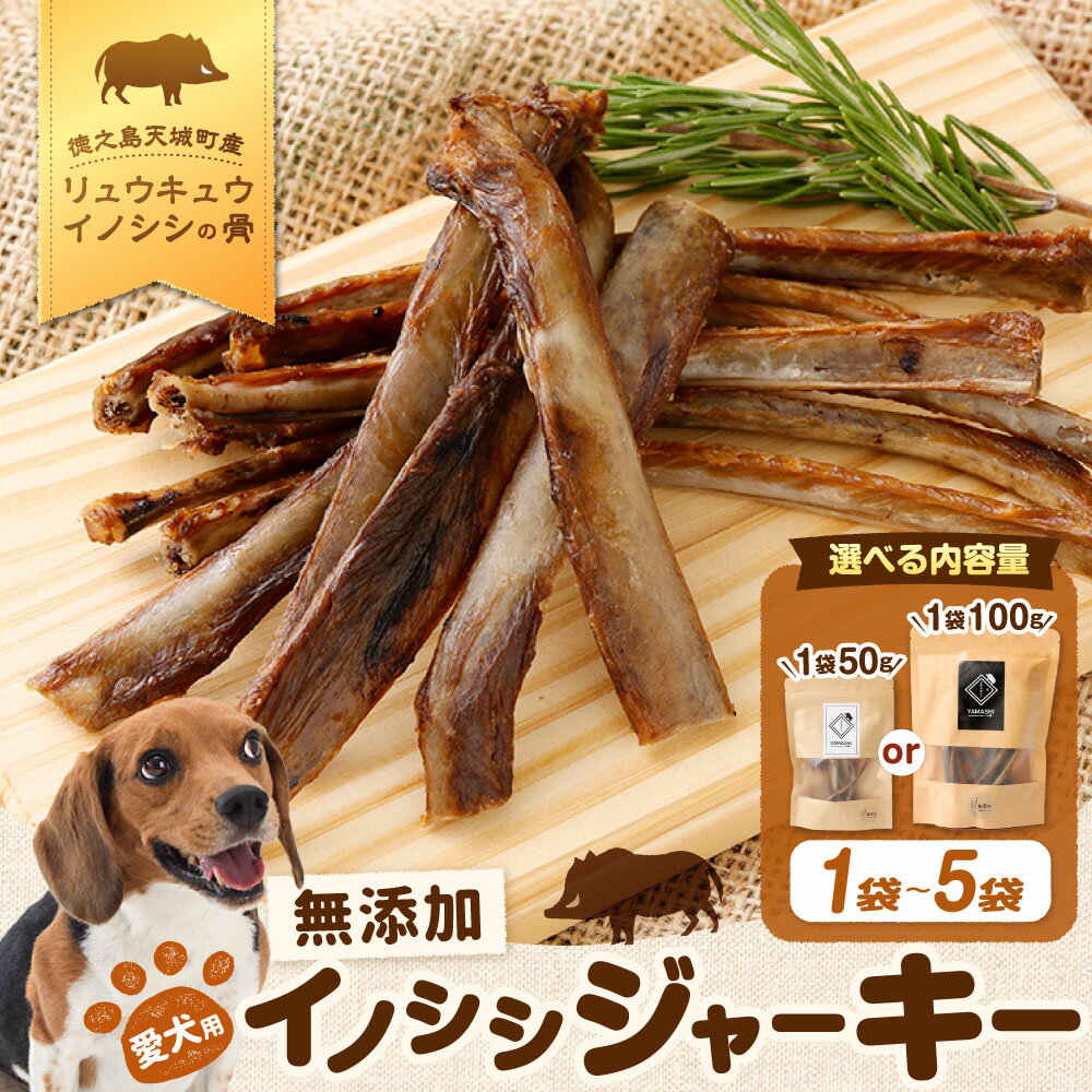 【ふるさと納税】〈選べる内容量〉無添加 イノシシ ジャーキー 1袋 ( 50g×1袋 ) / 3袋( 50g×3袋 ) / 5袋( 50g×5袋 ) / 1袋( 100g×1袋 ) / 3袋( 100g×3袋 ) / 5袋( 100g×5袋 ) ペットフード 愛犬用 SDGs おやつ リュウキュウイノシシ 猪 徳之島 天城町 送料無料