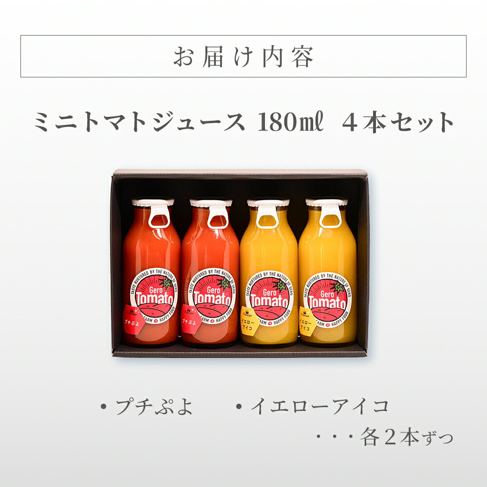 【ふるさと納税】飛騨産 100% 無添加 ミニトマトジュース180ml 4本セット(4) 2種類 (プチぷよ、イエローアイコ)(各2本)ギフト 贈り物 プチトマト ミニトマト プレゼント 贈答 とまと 飲料 野菜飲料 トマト トマトジュース 野菜ジュース 無添加 無塩 トマトの丘