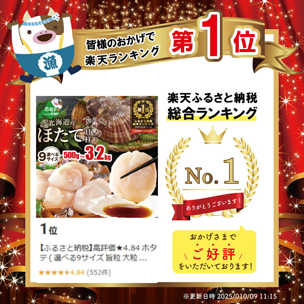 - 【ふるさと納税】【禁輸に負けない】高評価★4.84 ホタテ ( 選べる9サイズ 旨粒 大粒 大玉 特大 ジャンボ / 選べる容量 500g 1kg 2kg 冷凍 瞬間冷凍 ふるさと納税 ほたて 帆立 ふるさと納税 訳あり ふるさと 人気 魚介 海鮮 刺身 貝柱 北海道別海町 年末配送 年内配送 )