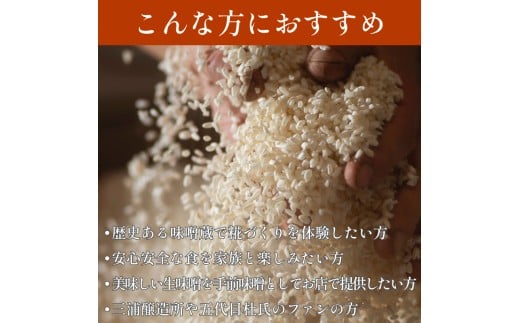 - 【体験型】 味噌 糀づくり 体験 一樽 オーナー制 米糀味噌 味噌 みそ 米糀 大豆 5代目 杜氏 今摺 熟成米 味噌作り 体験 徳島県 阿波市 四国 三浦醸造所