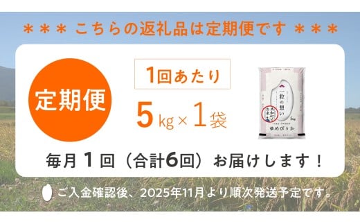 - 〈令和7年産〉 定期便 6ヵ月連続お届けゆめぴりか 5kg 精米 北海道 共和町 共和町米生産友の会 ※沖縄・離島への配送不可