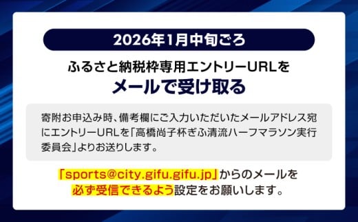 マラソン出走権 高橋尚子杯 ぎふ清流 ハーフマラソン 2026 (1名分) スポーツ 岐阜 マラソン大会 ランナー エントリー 参加権 チケット 体験 運動 ジョギング 陸上 高橋尚子 金メダリスト 監修 長良川 岐阜メモリアルセンター 2026年 令和8年 4月26日 開催 記念 思い出 ギフト プレゼント 贈り物 贈答 岐阜市 / 高橋尚子杯ぎふ清流ハーフマラソン実行委員会 [ANDX001]