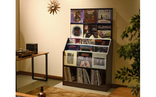 レコードディスプレイラック RCS1030D 木目ダーク 《サイズ幅103×奥行34.5×高さ171.5(cm) 重量27kg》 【レコードジャケットを楽しめるディスプレイ 約420枚】組立式 おしゃれな収納棚ラック 収納家具 家具インテリア 加茂市 オークス