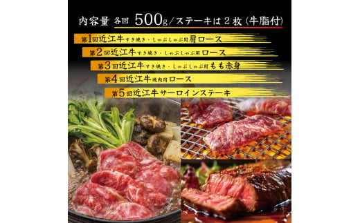 【定期便】 近江牛 食べ比べ 各500g 全5回 ( すき焼き しゃぶしゃぶ ステーキ 近江牛 ブランド牛 近江牛 牛肉 近江牛 近江牛 贈り物 ギフト 近江牛 国産 近江牛 滋賀県 近江牛 竜王町 近江牛 近江牛 霜降り 神戸牛 松阪牛 に並ぶ 日本三大和牛 ふるさと納税 )