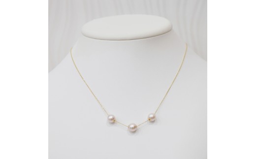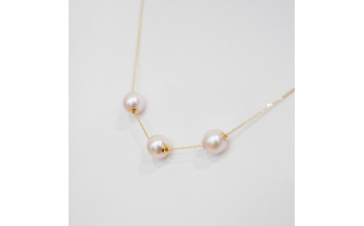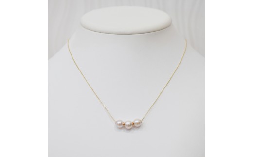 S101-454_あこや真珠 天草 ネックレス ピンク スルー シリコン 3連 7.5mm - 8mm 調色 K18YG