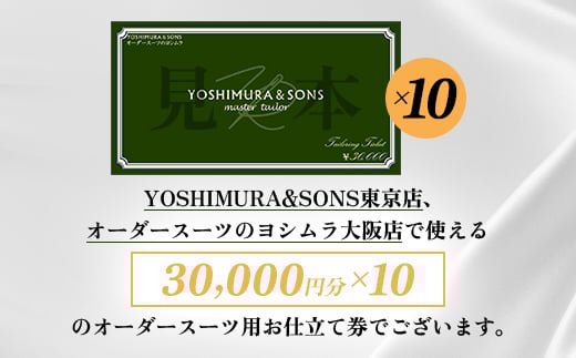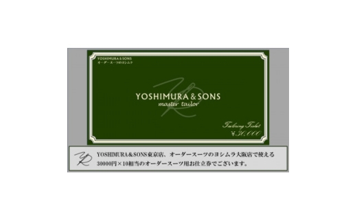 - オーダースーツお仕立券<3万円×10>YOSHIMURA&SONSオーダースーツヨシムラでご利用可能【1689159】